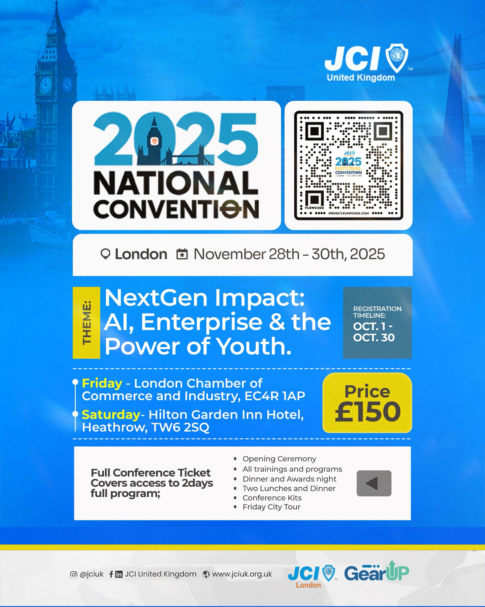 Join us for the biggest JCI UK event of the year — the 2025 National Convention. This is where young leaders, entrepreneurs, and changemakers from across the UK and beyond gather to connect, learn, and celebrate achievements.This year’s theme is Gear Up, inspiring us to accelerate our personal and professional growth, strengthen our leadership, and build lasting impact in our communities.