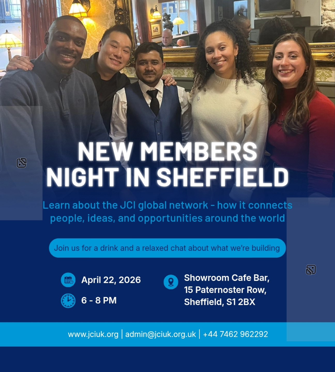 We would love to welcome you to meet Our JCI UK Genreal Director from the National Board, He will have a chat, talk about his experince and getting to known and how we can help you get the most of your membership